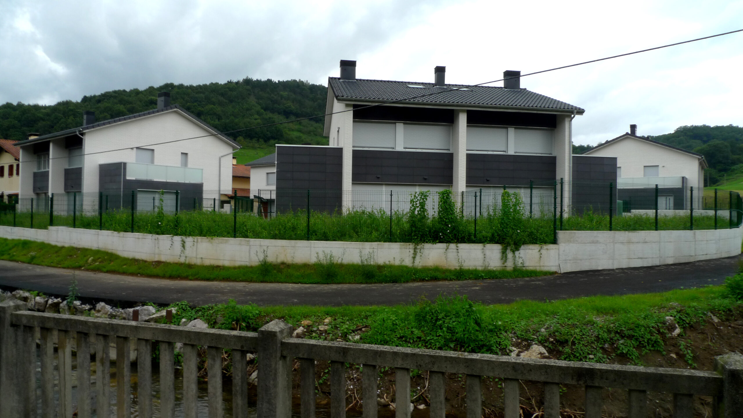 La actuación residencial proyectada contempla la construcción de diez viviendas unifamiliares pareadas, dispuestas a ambos lados de una vía interna de nueva creación, con una longitud aproximada de 108 metros. Esta vía se inicia a continuación del núcleo de viviendas de Errotaurre y finaliza en un fondo de saco que funciona como espacio de maniobra y zona de aparcamiento, con capacidad para hasta ocho vehículos.