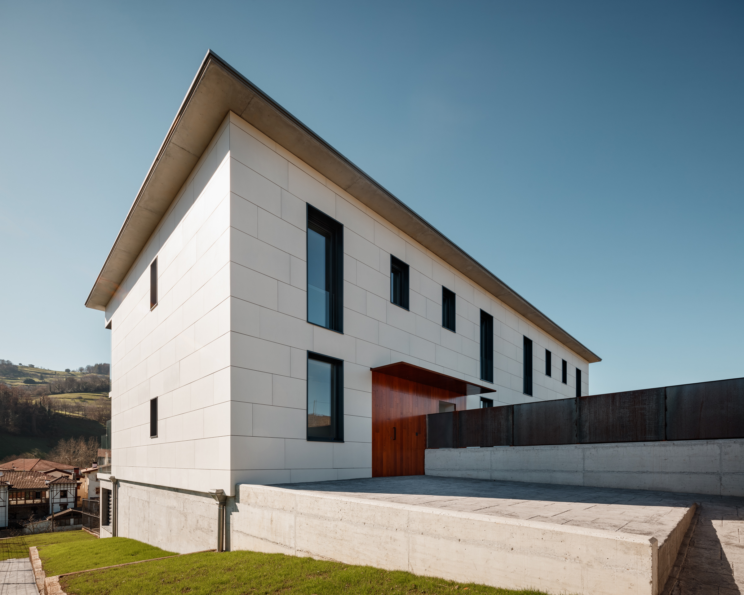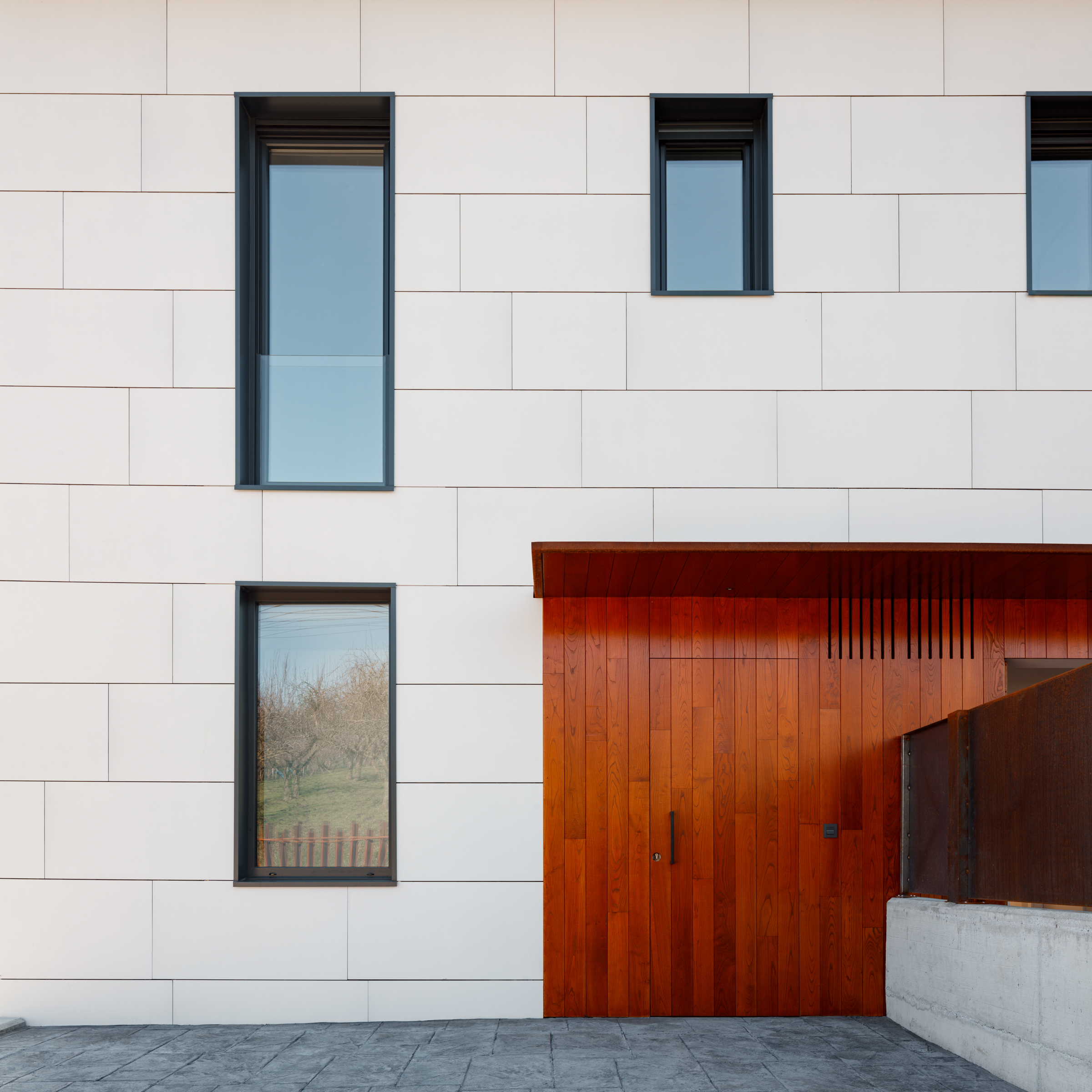 Ideia hori kontuan hartuta eta igeltso horren genero noble eta goxotasun handikoa izanik, etxe berri honen fatxada bukaera eta kolorea sortu zitzaigun.
