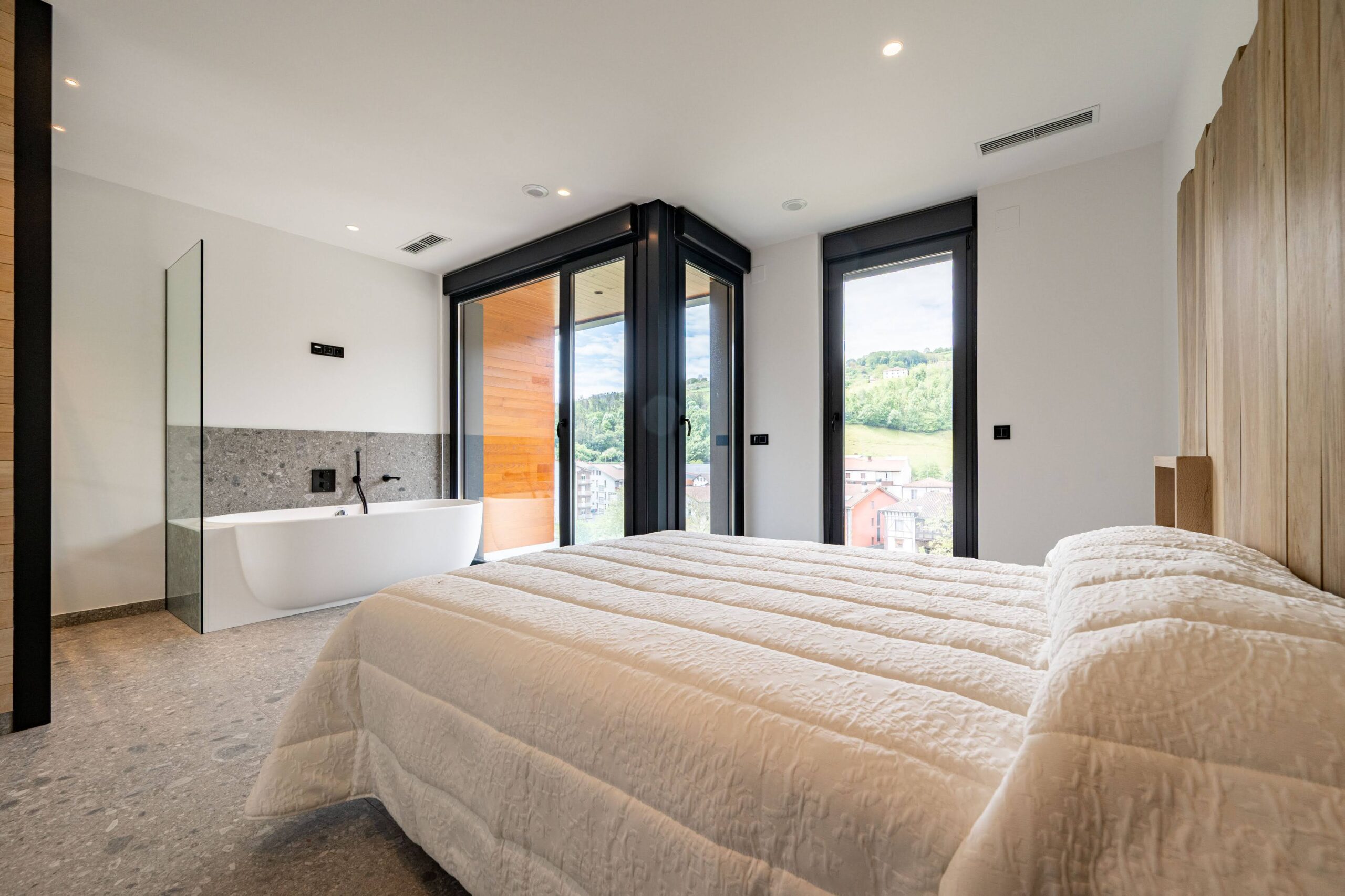 Duen kokapen egokiaz baliatuz, hegoaldera eman dizkiogu leiho handi, terraza eta balkoiak, espazio ireki, zabal eta argitsuak lortuz