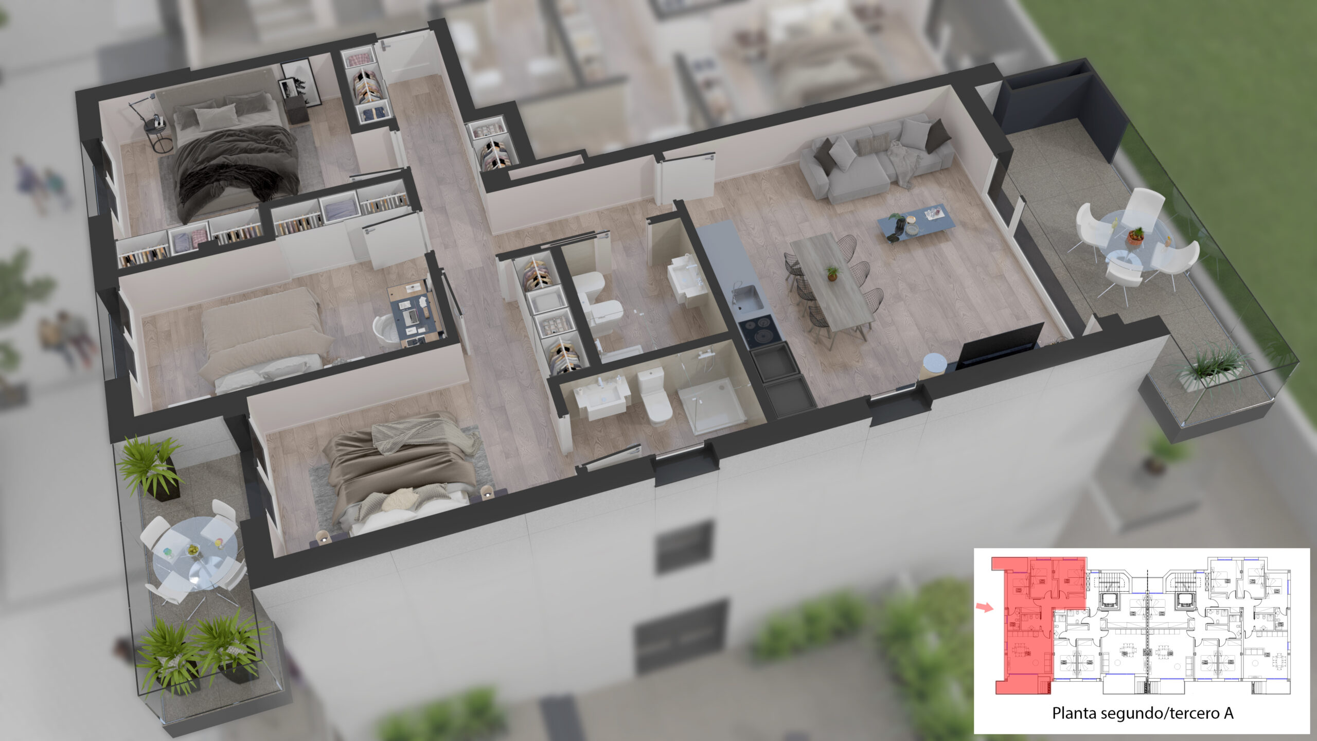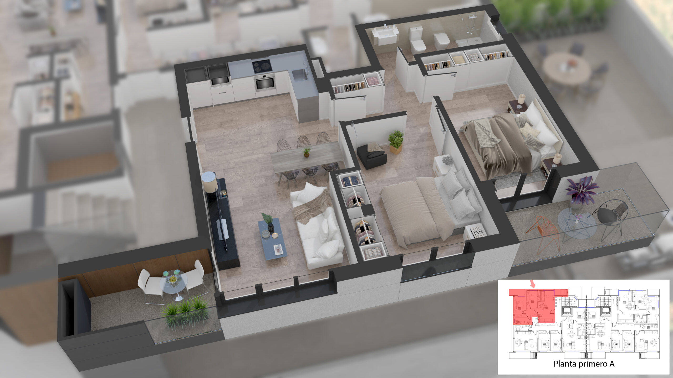 - Lurzoruak: Zoladura zeramikoa edo kalitate handiko parketa, nahi izanez gero.