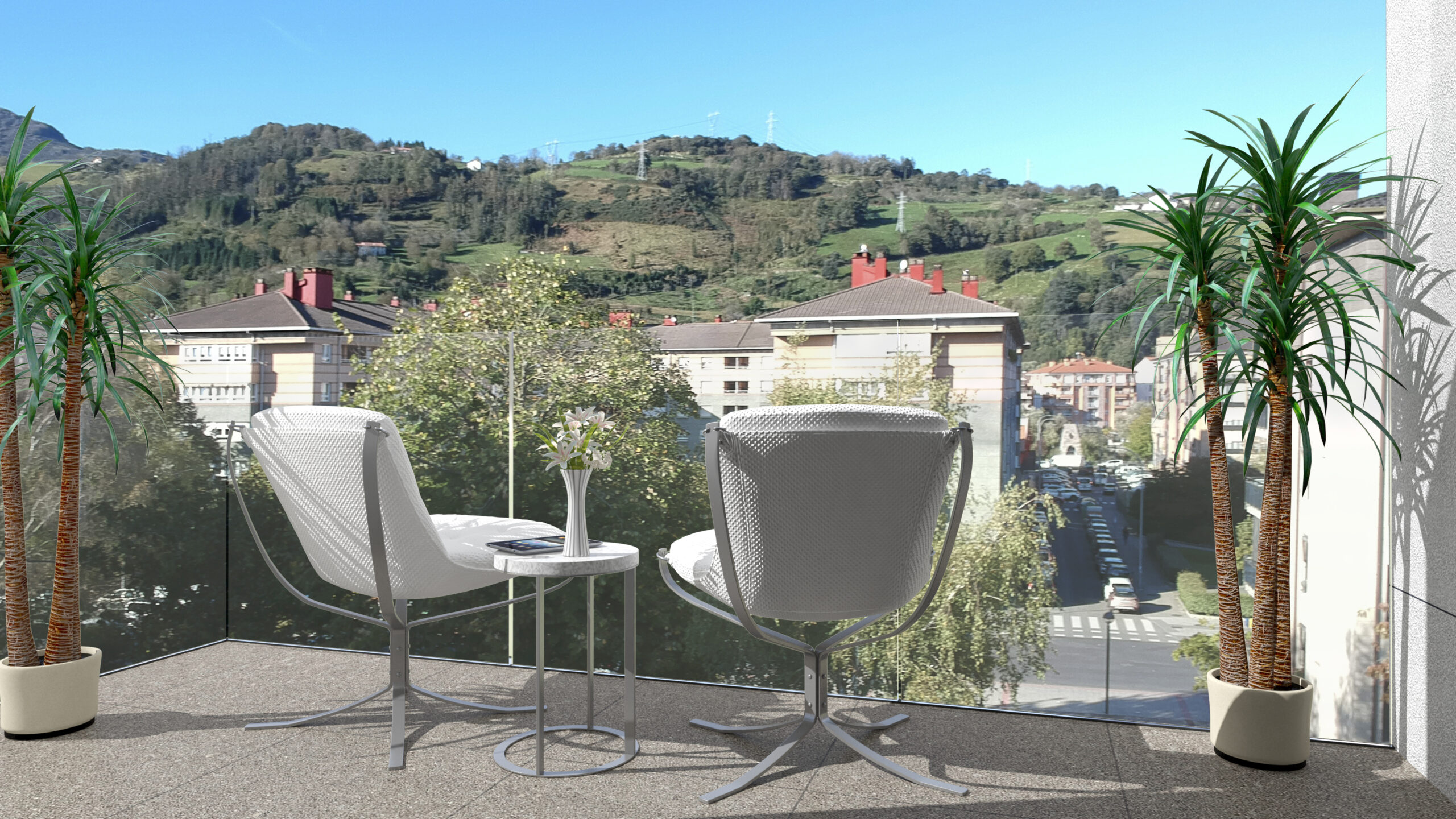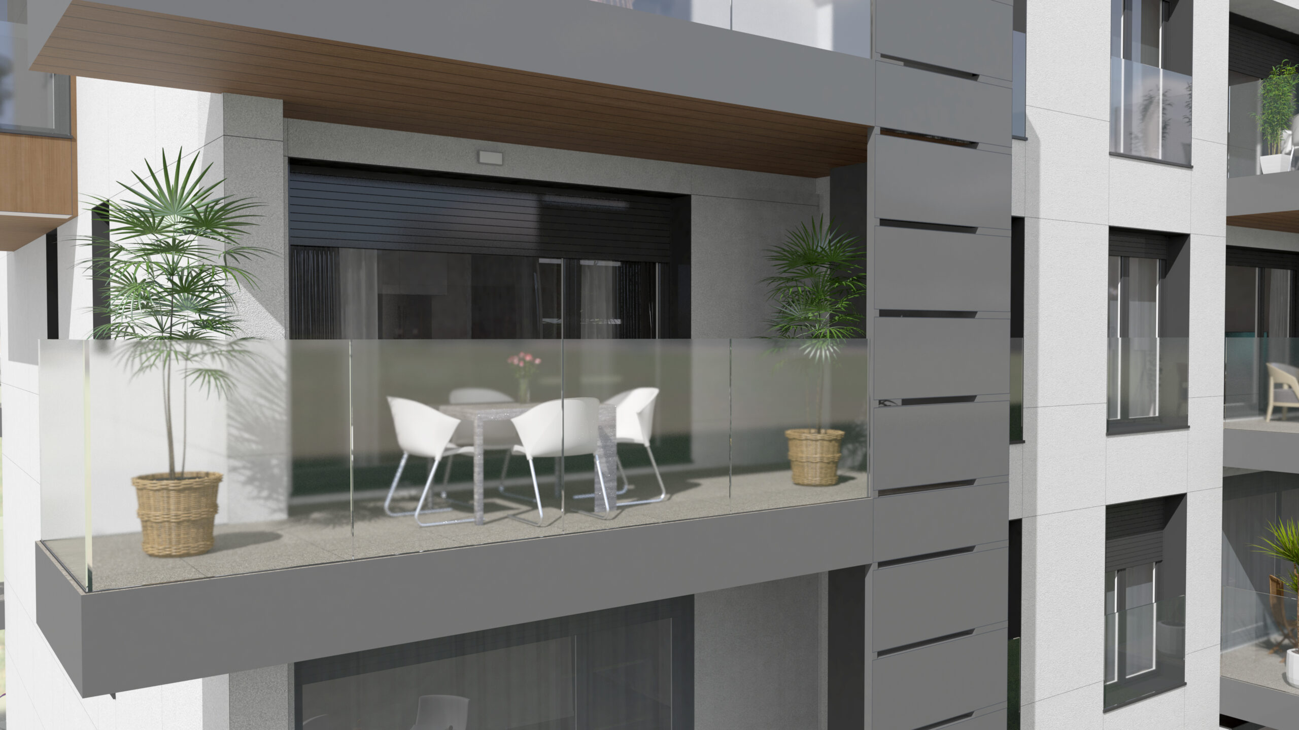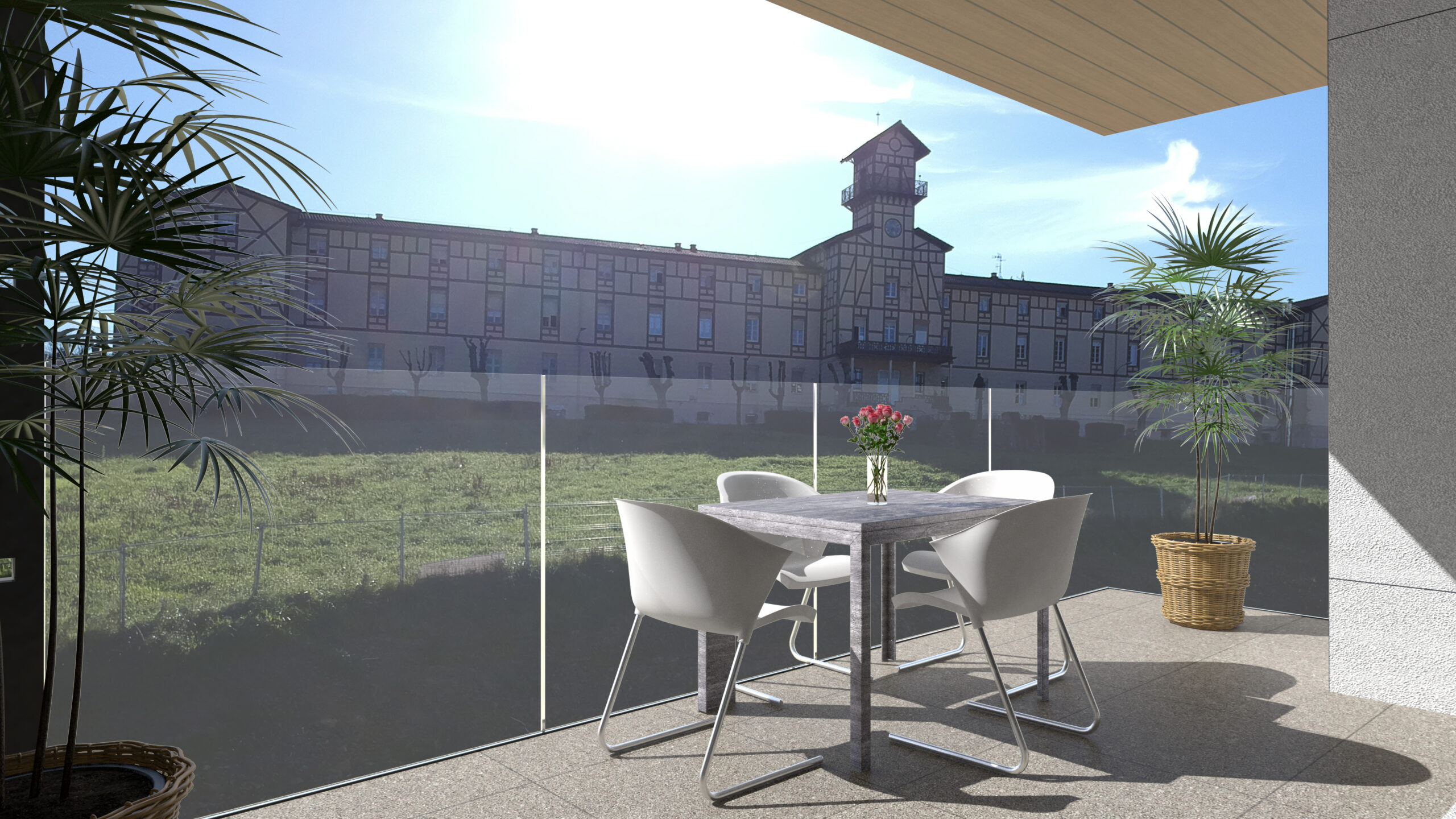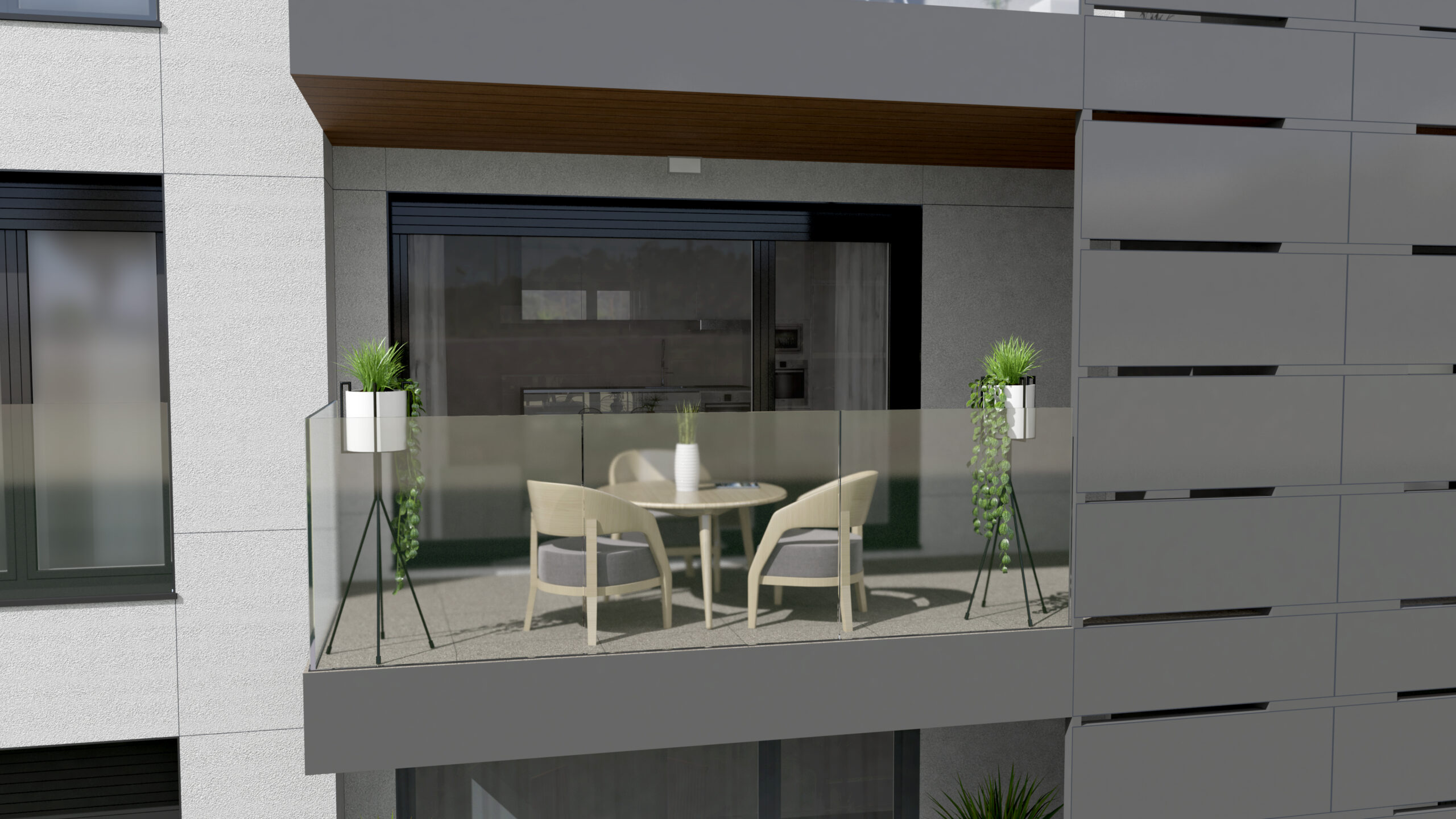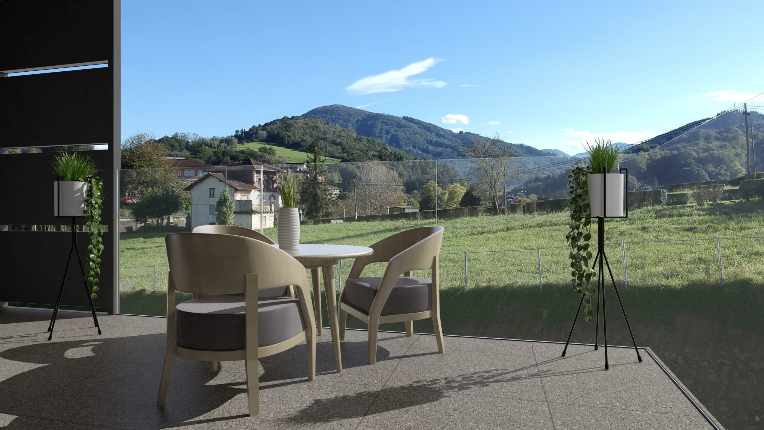 - Kanpoko arotzeria: aluminioa edo PVCa, pertsiana edo estore elektrikoekin, argia eta pribatutasuna erabat kontrolatzeko.
